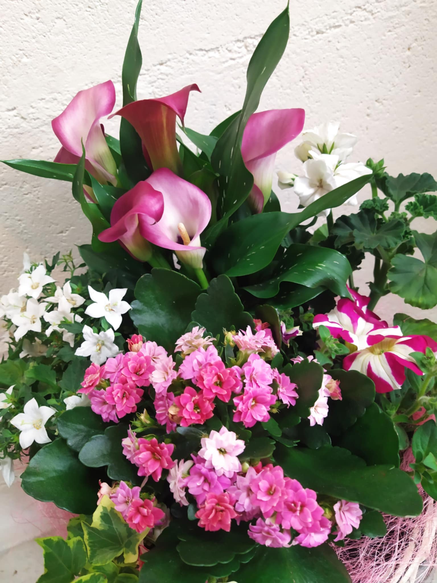 Panier de plante en fonction des fleurs de saisons couleur rose